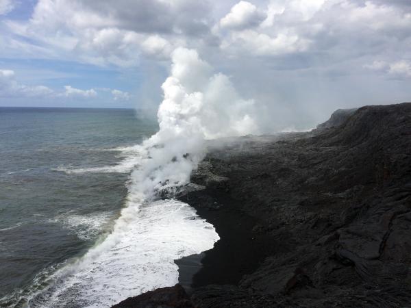 The white plume produced when lava enters the sea is a