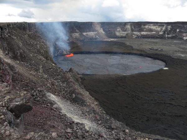 lake within Halemaʻumaʻu Crater dropped out of view of